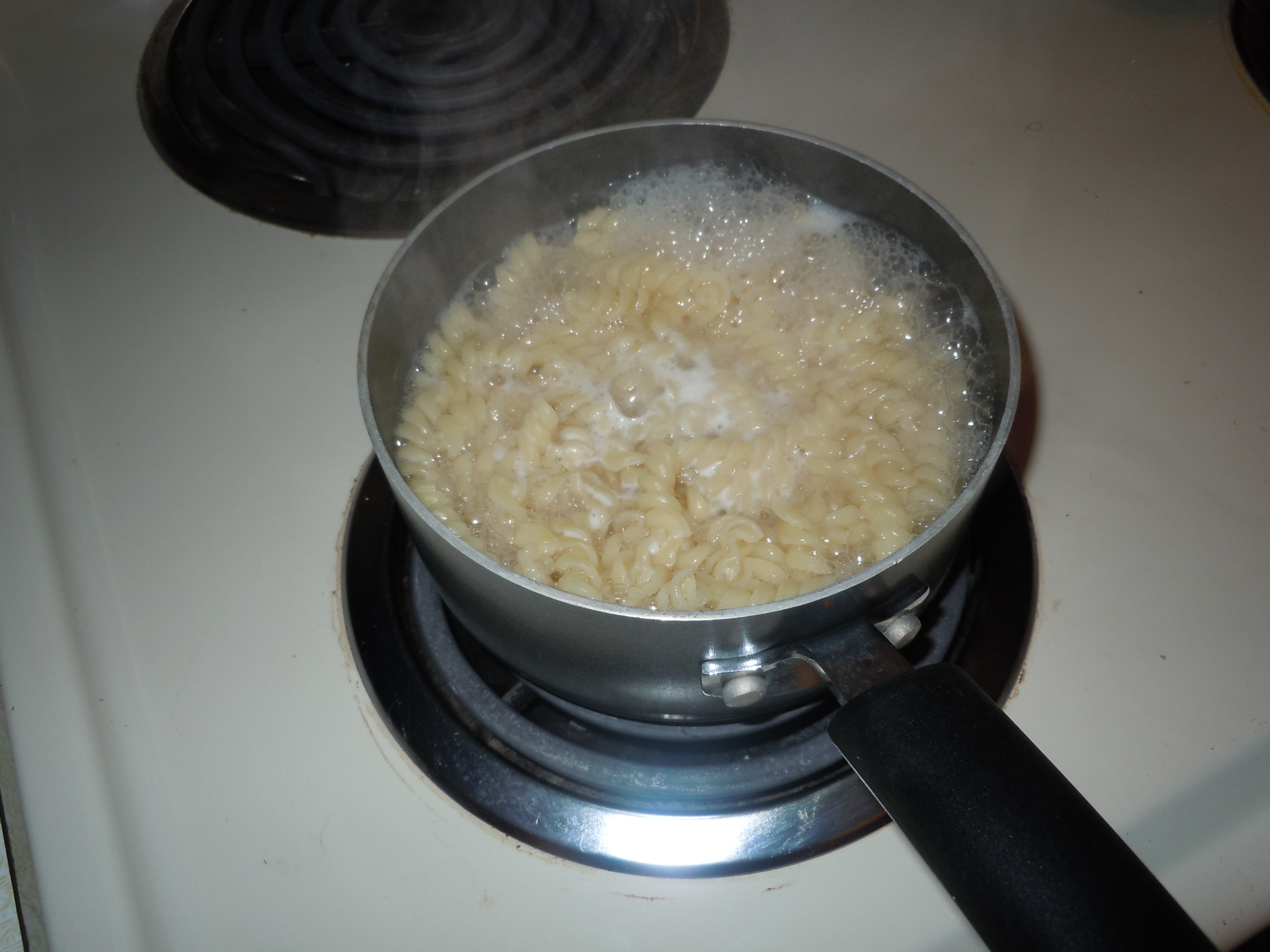 While that’s going on, heat up your noodles in a pot (medium-high), drain your noodles (Tip: If you shake your noodle more than three times, you’re technically playing with yourself).
